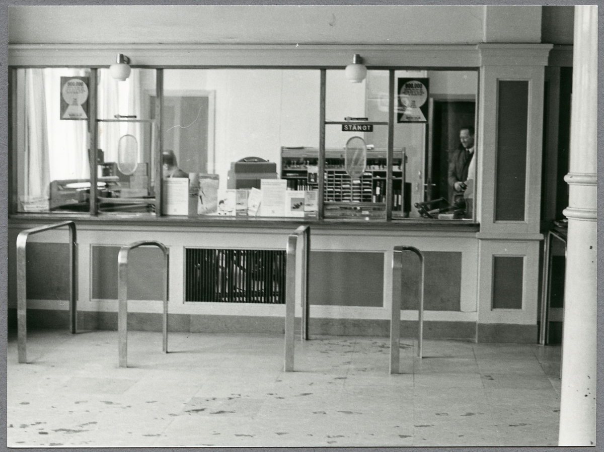 Interiör av Skövde stationshus, biljettexpeditionen.