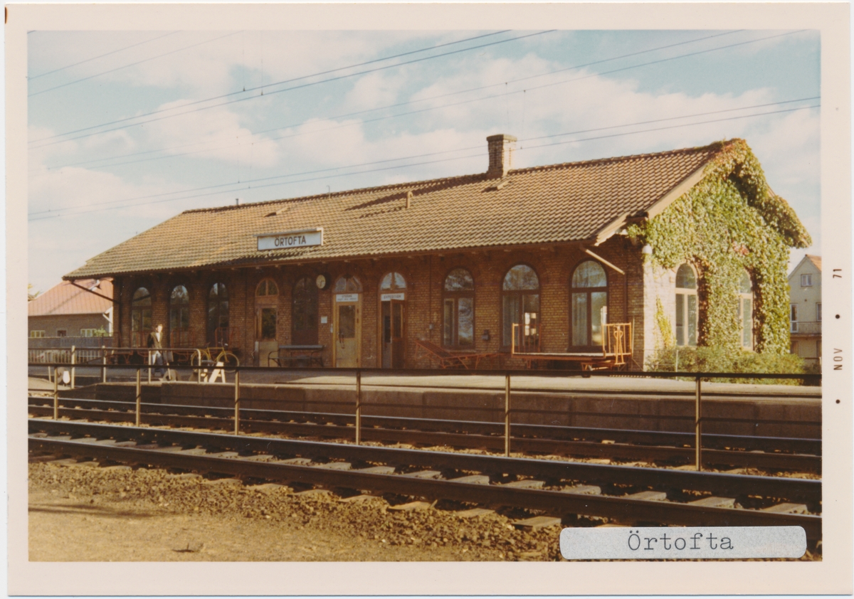 Örtofta station 1971. Statens Järnvägar, SJ. Stationen öppnades 1857. Stationshuset byggdes 1858 och revs på slutet av 1970-talet. Men 1983 anlades en hållplats för Pågatågen. Banan elektrifierades 1933.