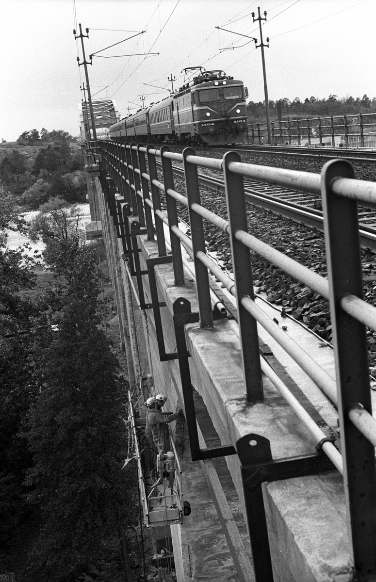 Svetsningsarbete på spann och bropelare på Årstabron