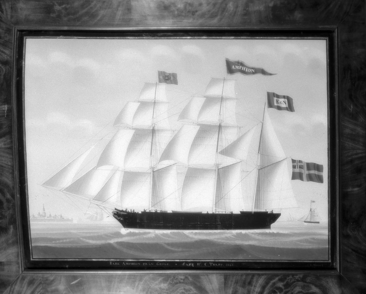 Bark "Amphion". Holländsk glasmålning. Fartygsutställningen i Gävle år 1933.