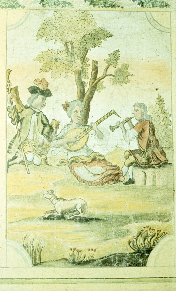 Detaljbild av väggmålning med bilbelcitat. "Jesus Christus all werdens..." "1846".