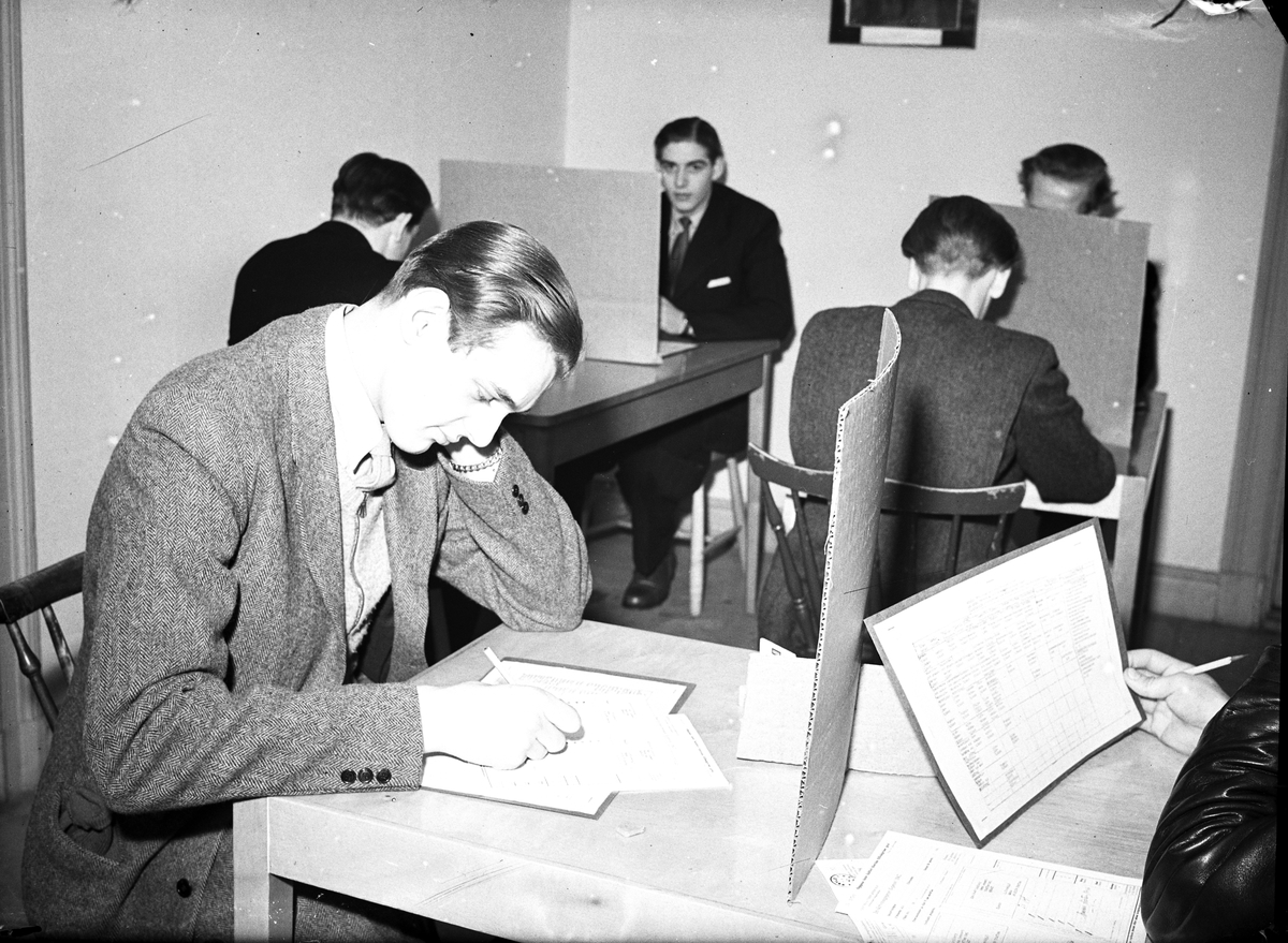 Mönstring av värnpliktiga på soldathemmet. Testningsprov.