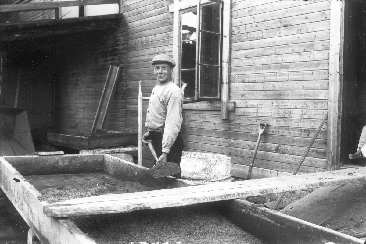 Uppförande av nya ladugården hos Nils-Nils, Lenninge 1:3.