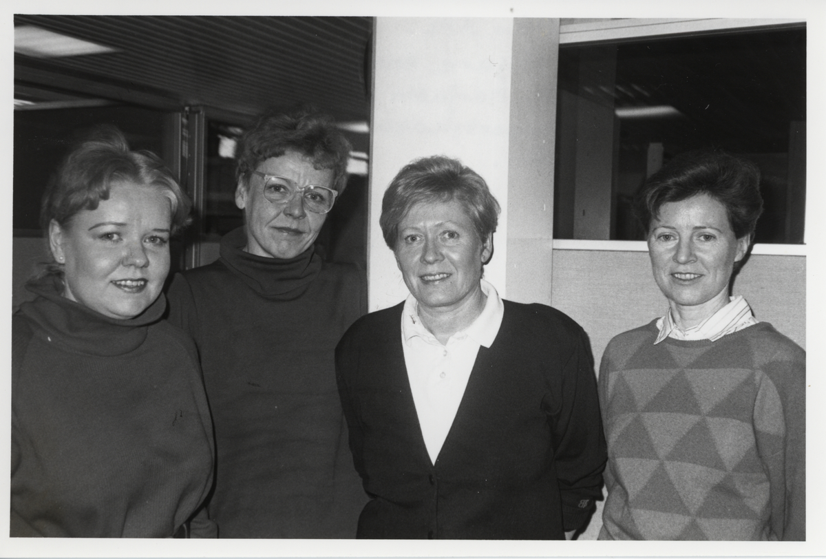 Finska tjejer från AFL. En Säljare, en Sekreterare/ marknadsförare, en från bokföring samt en kvinna från import/kassa. 1989.