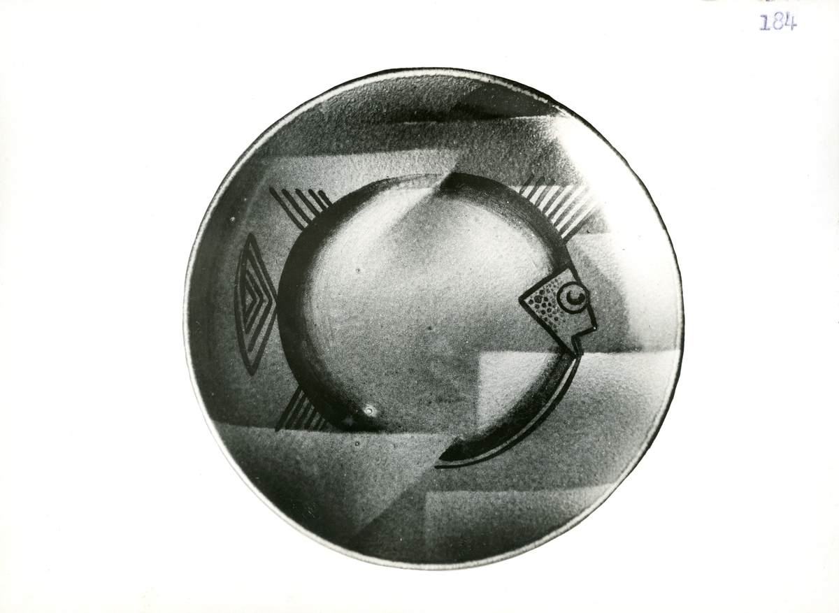 Fat med en fisk från Bo Fajans, formgivare Ewald Dahlskog, tidigt 1900-tal.