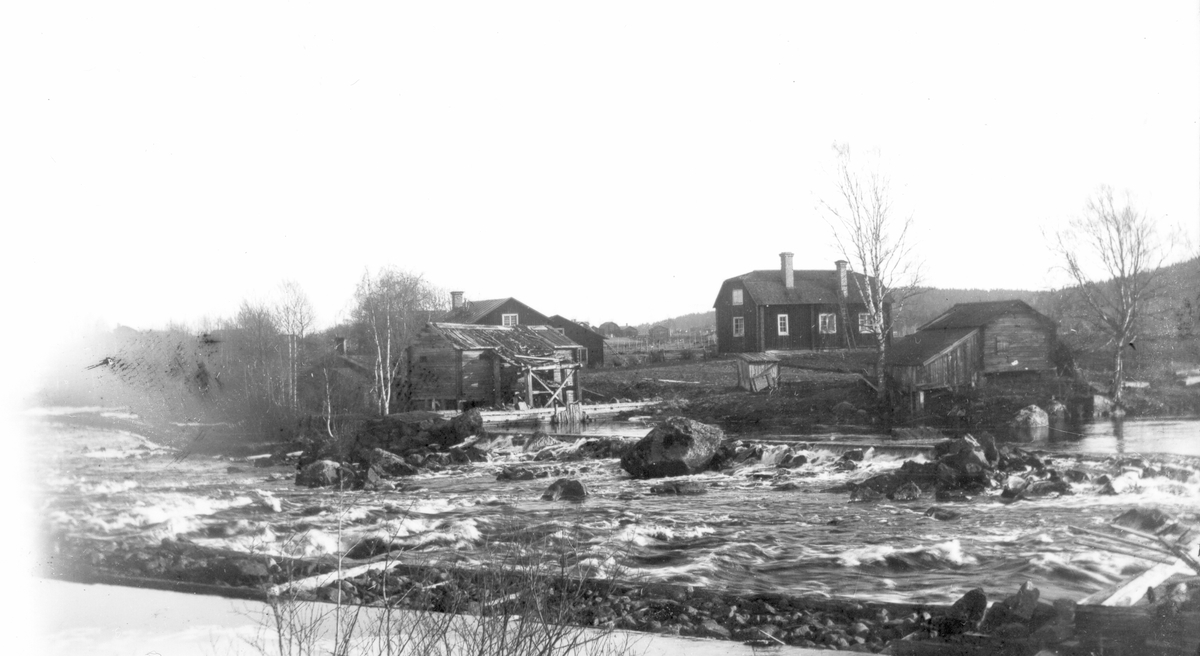 Några byggnader vid Sandbergs smedja (Lenningefors).