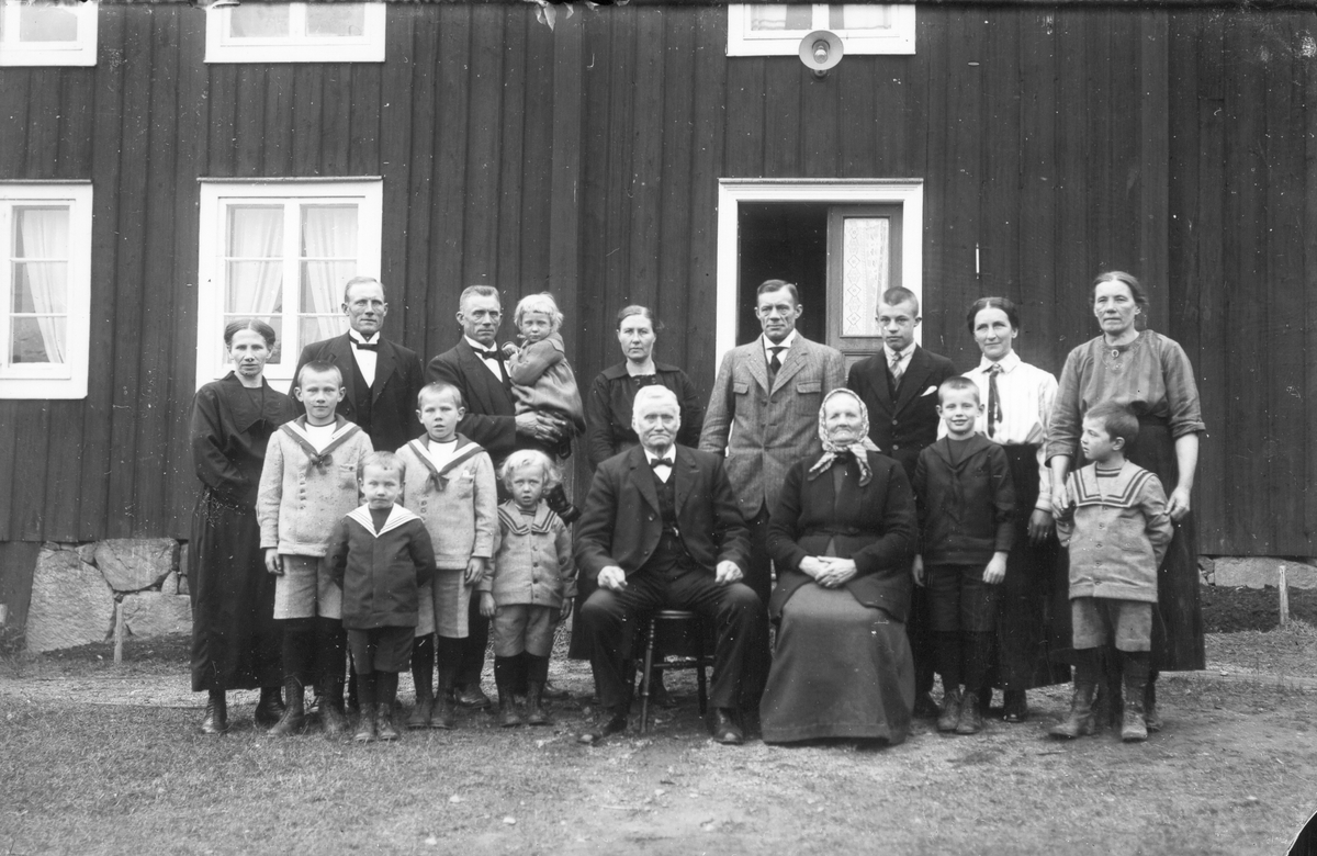 Släktfoto från Per-Jöns. Bakre ledet från vänster: Elin (hustru till Lars P.), Lars Persson (född 1885), Hans Persson (född 1874) med Elin (född 1919) i famnen, Jenny Persson (född 1885), Per Persson (född 1882), Gösta Persson (född 1908), Stina Persson (född 1882) och Brita Persson (född 1877). Främre ledet från vänster: Gustav, Sven och Lars, söner till Lars och Elin Persson, Pelle Hansson (född 1918), Per, en bror till Brita, Brita Hansson (född 1843), Julle Persson (född 1915) och Gustav Persson (född 1917). Lars Persson med hustru Elin och sönerna Gustav, Sven och Lars bosatta i Västmanland. Hans Persson med hustru Jenny och barnen Elin och Pelle bosatta i Per-Jöns (då Voxsätter 5, nu Voxsätter 13:6). Per Persson med hustrun Stina och sönerna Gösta och Julle bosatta på Voxsätter 5:3 (handlare Perssons) samt Brita Persson med sonen Gustav senare bosatta på Lenninge 6:7.