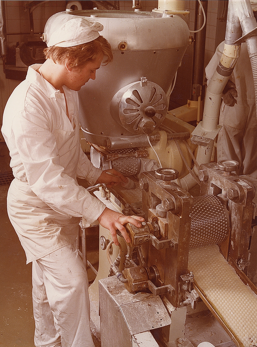 Tillverkning av BonBon-tabletter. Bandet talkas. Vita Läkerol tryckes.