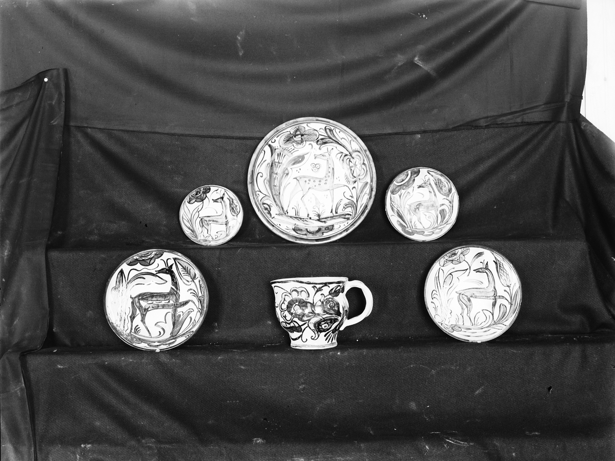 Servis med avbildad hind och kurbits. Bobergs Fajansfabrik AB.