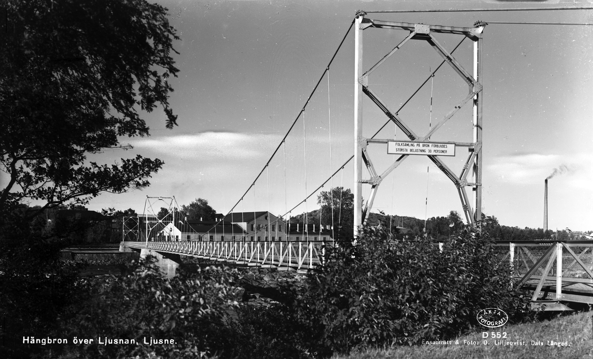 Ljusne, Hälsingland. Skylt på Hängbron; " Folksamling på bron förbjudes. Största belastning 30 personer"