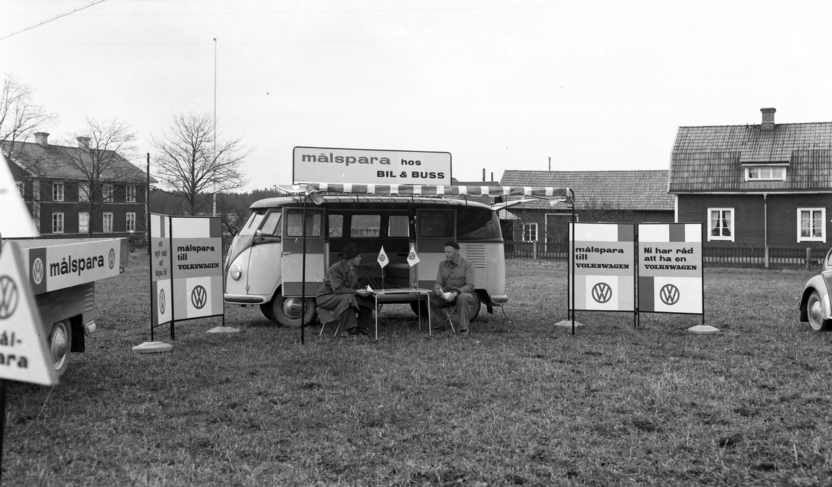 Bil & Buss, "Målspararkaravanen" parkerad utanför ett bostadsområde