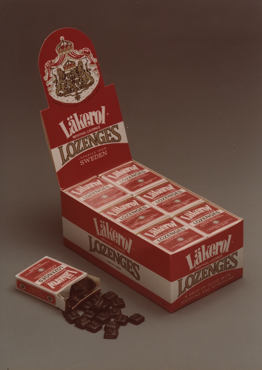"Läkerol Menthol-Licorice Lozenges A drop of good taste soathing and refreshing"