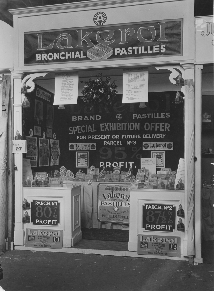 Reklam för Läkerol. Info baksidan: "Chemist exhibition" Maj 1927.