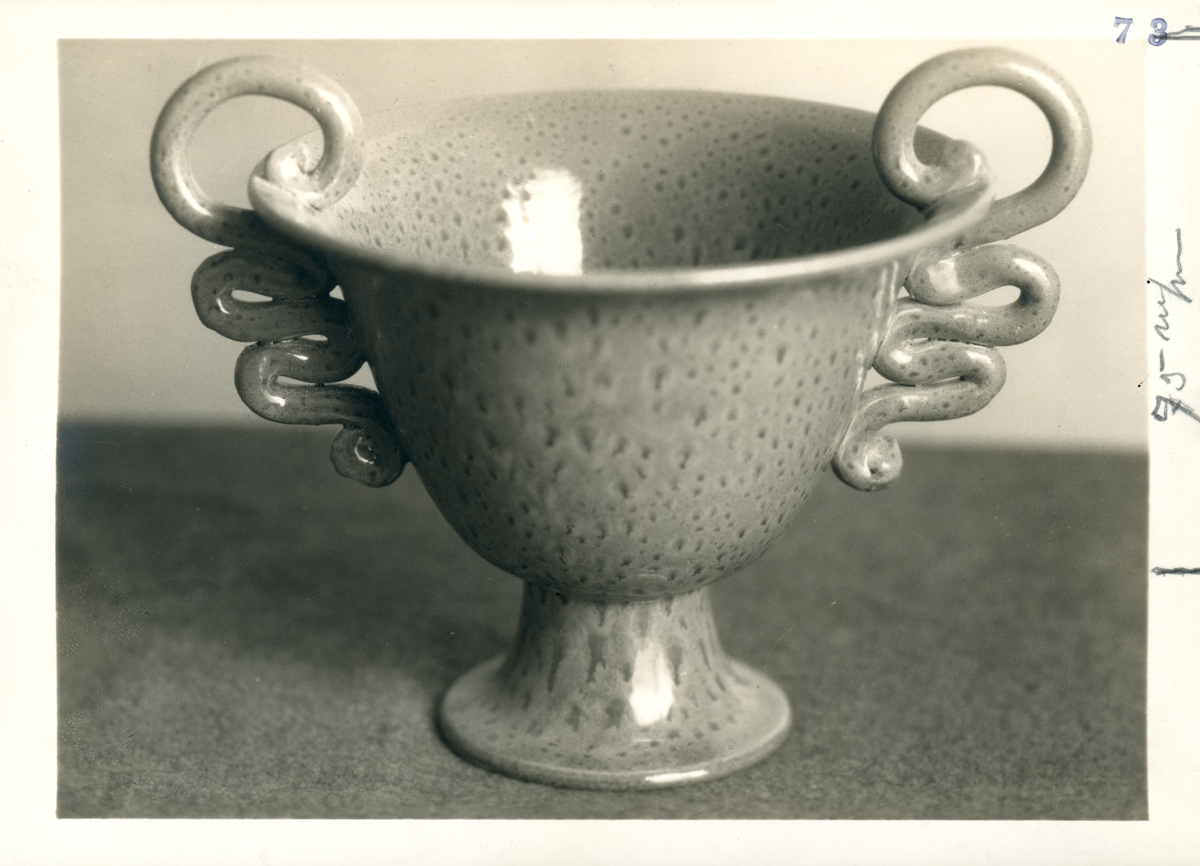 Fruktskål modell 4200 G från Bo Fajans, formgivare Eva Jancke-Björk tidigt 1900-tal. Gul konstglasyr.