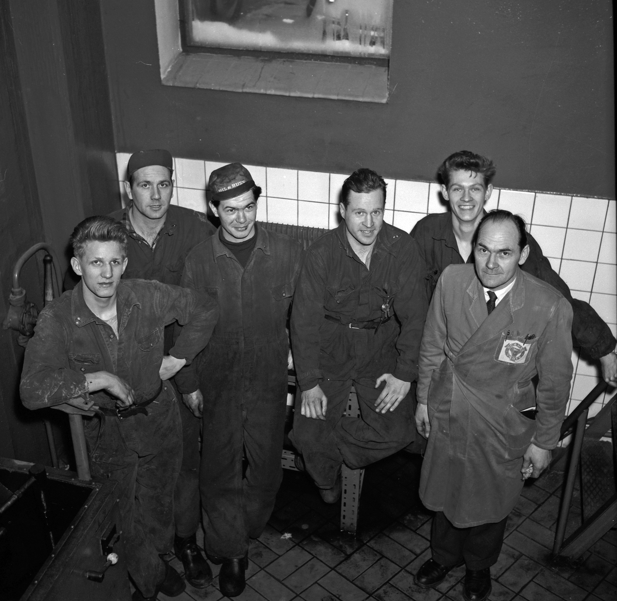 Bil & Buss i Gävle, verkstadsarbetare tillsammans med en förman (längst till höger)