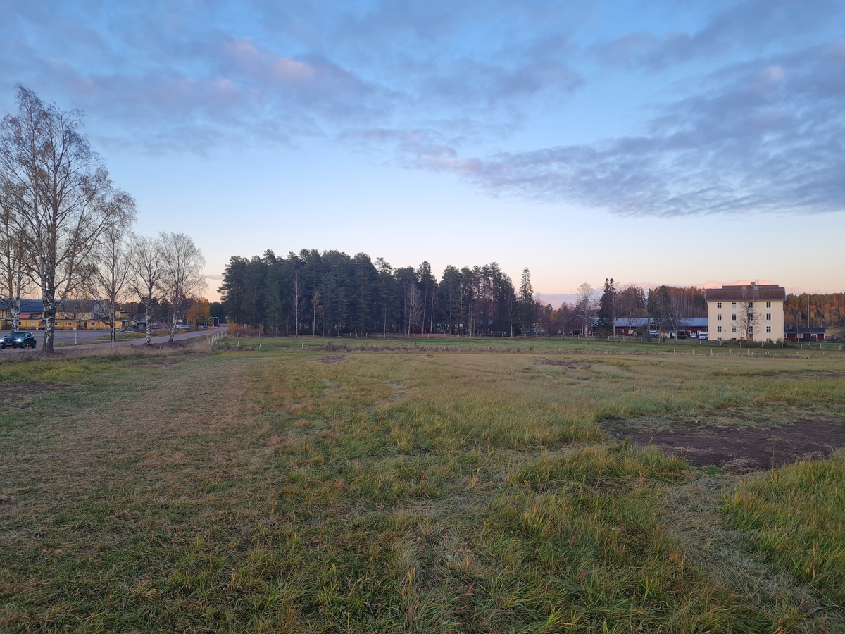Vy över blästbrukslämningen L2022:6993 påträffad vid arkeologisk utredning i Säversta, Bollnäs sn, Bollnäs kn. Till höger i bilden syns det så kallade "Slottet i dalen". Foto mot nordnordöst.