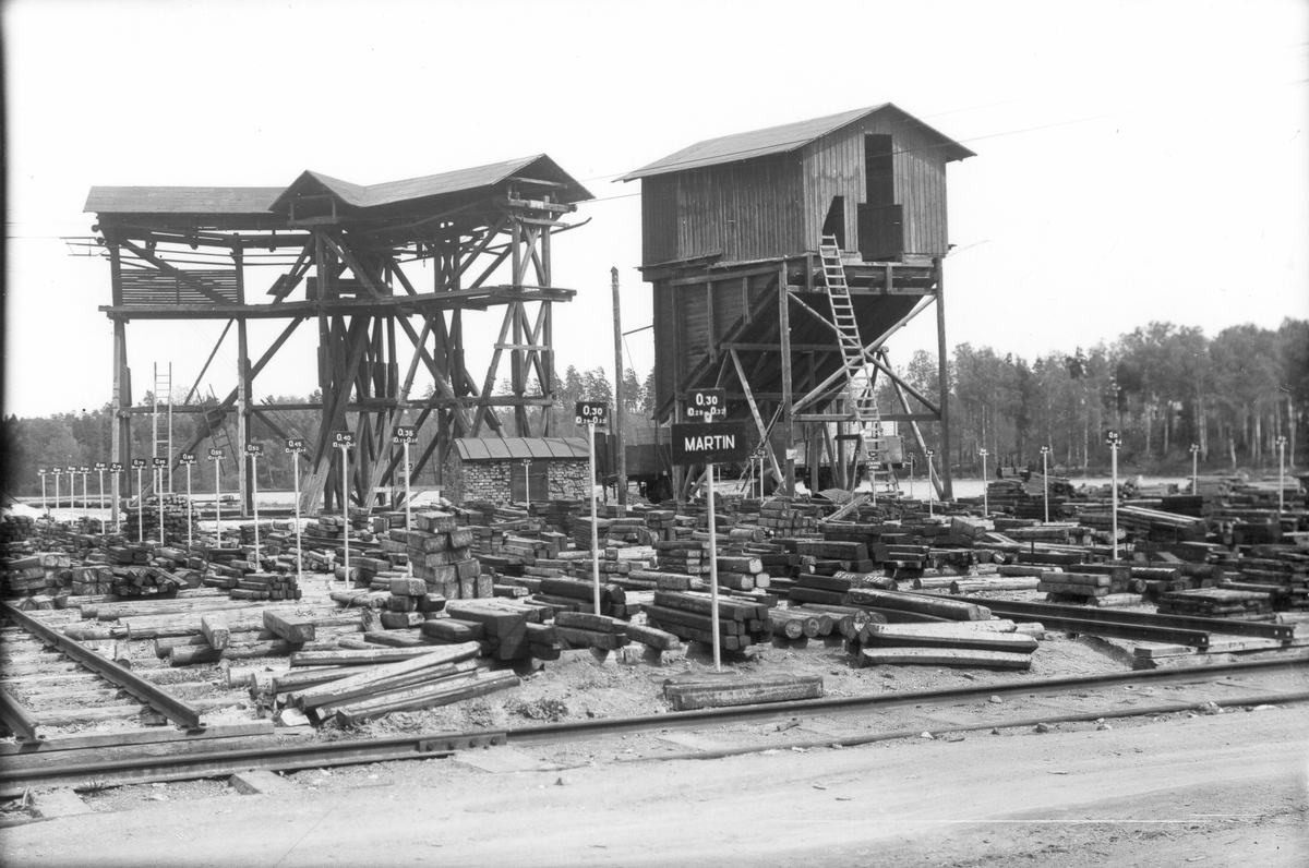Ämnesupplaget i verket. Nya systemet med skyltar. Fotograferat på begäran av ingenjör Norbeck, tidsstudieavdelningen i Forsbacka, den 25 maj 1945.