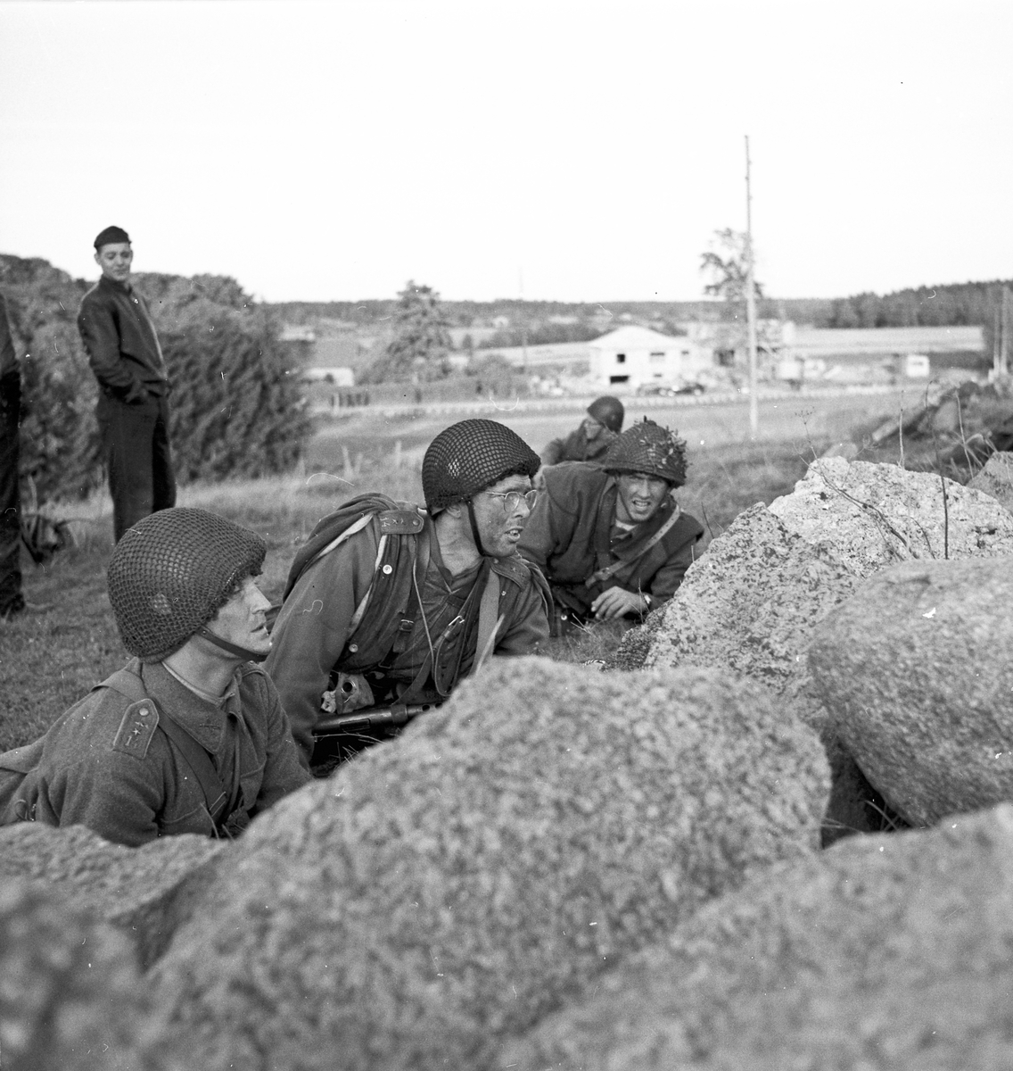 En grupp soldater från Hälsinge Regemente, I 14, ute på övning
