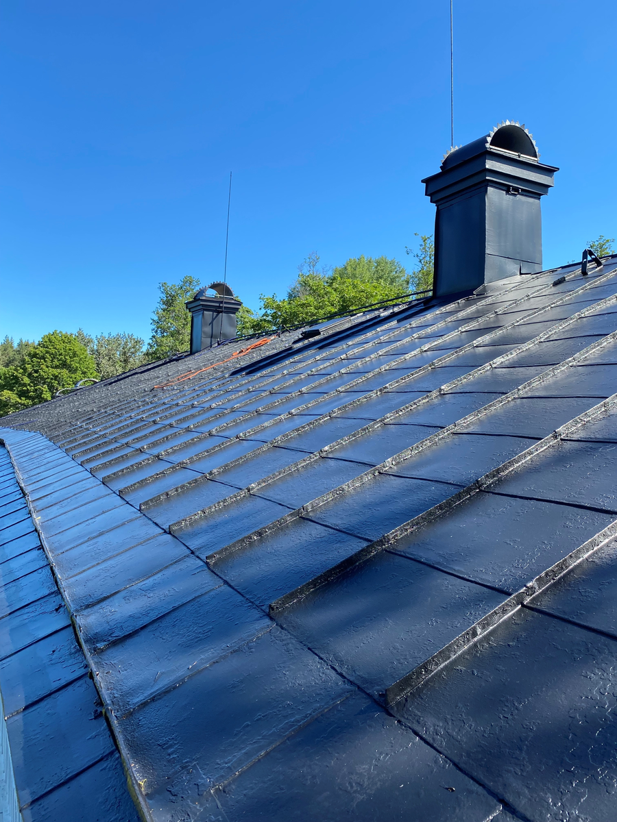 Det falsade plåttaket på Gästrumsflygeln öster om Mackmyra herrgård.