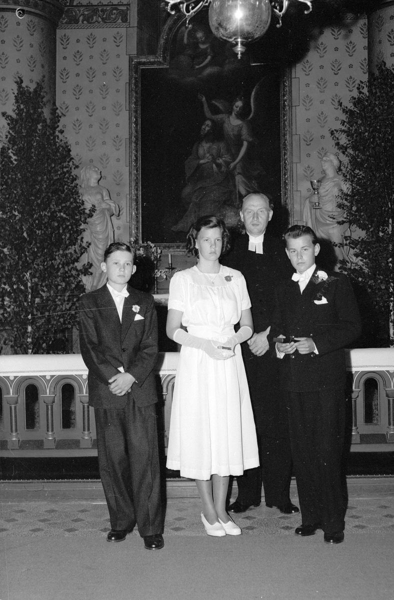 A. Cedermark, komminister. Konfirmander i Älvkarleby kyrka. 7 augusti 1949.