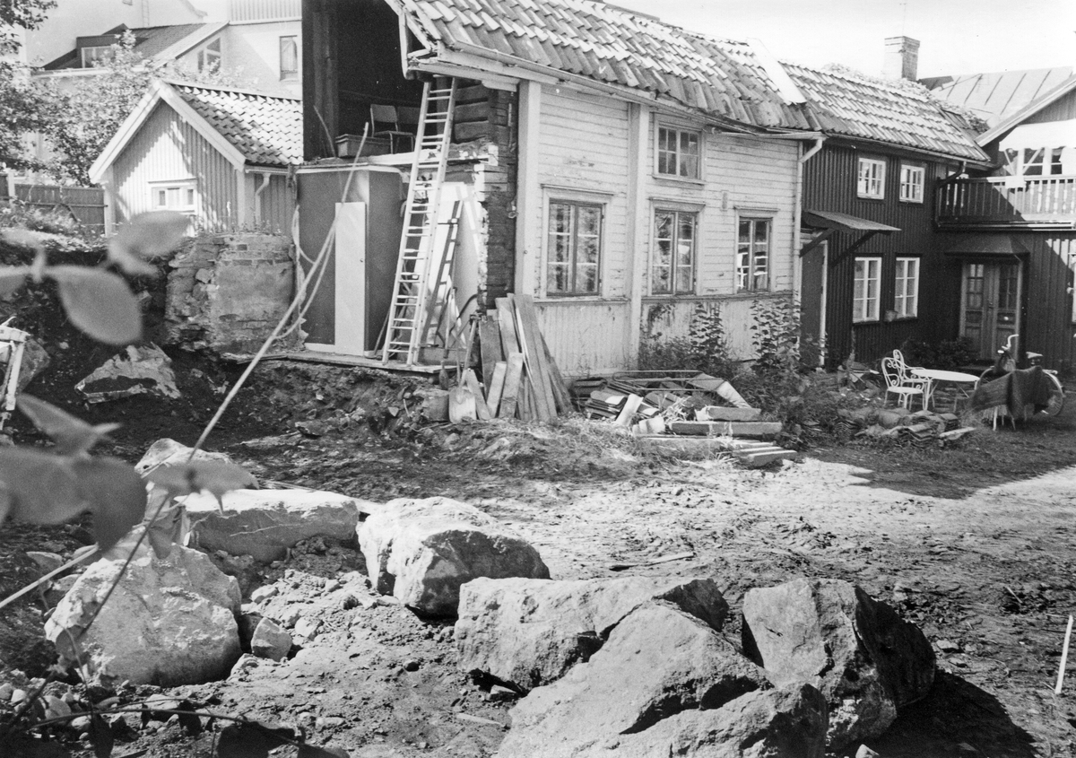 Rivning eller renovering av bostadshus på Smedjegatan 10, Charlie Sunemos fastighet. (Han heter egentligen Lars-Ove men kallas Charlie.)
