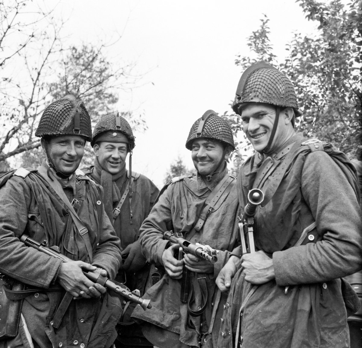 Fyra soldater ute i fält under övning med Hälsinge Regemente, I 14