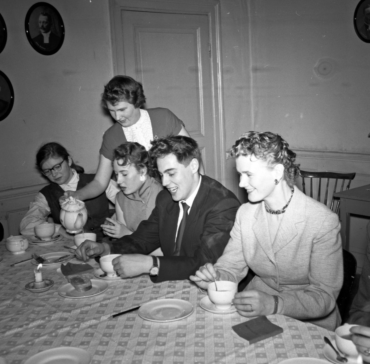 Församlingsmedlemmar till bords i Södra Församlingshuset