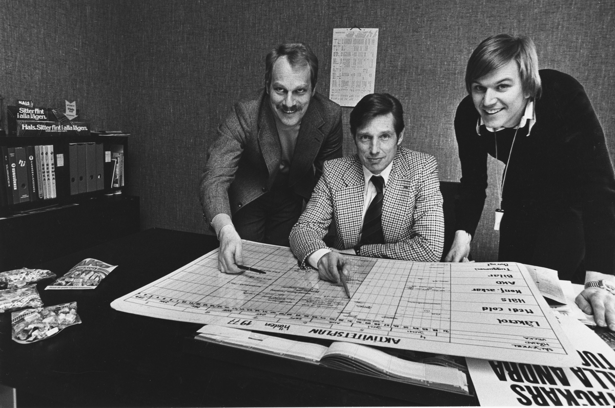 Ove Anonsen diskuterar höstens aktiviteter med Berndt Carlsson och Tomas Eklund februari 1977.