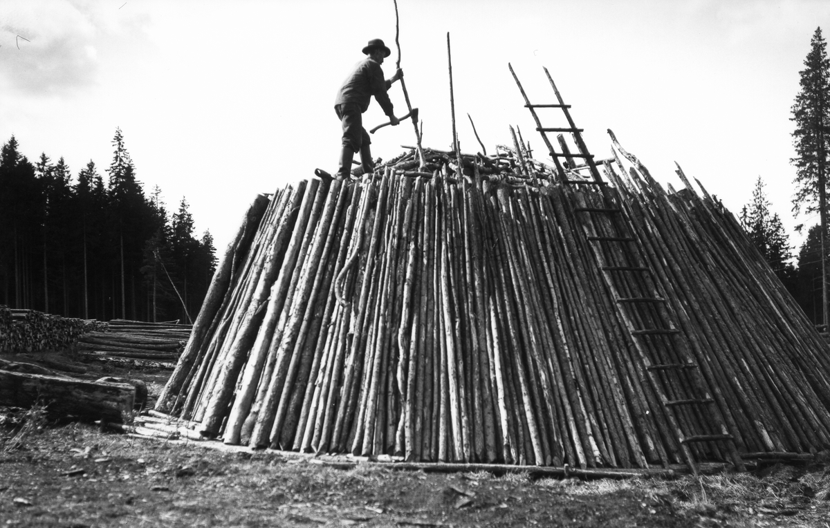 Kolmila vid Hofors. Milan visar hur "kullen hugges", den är ännu inte helt färdig.