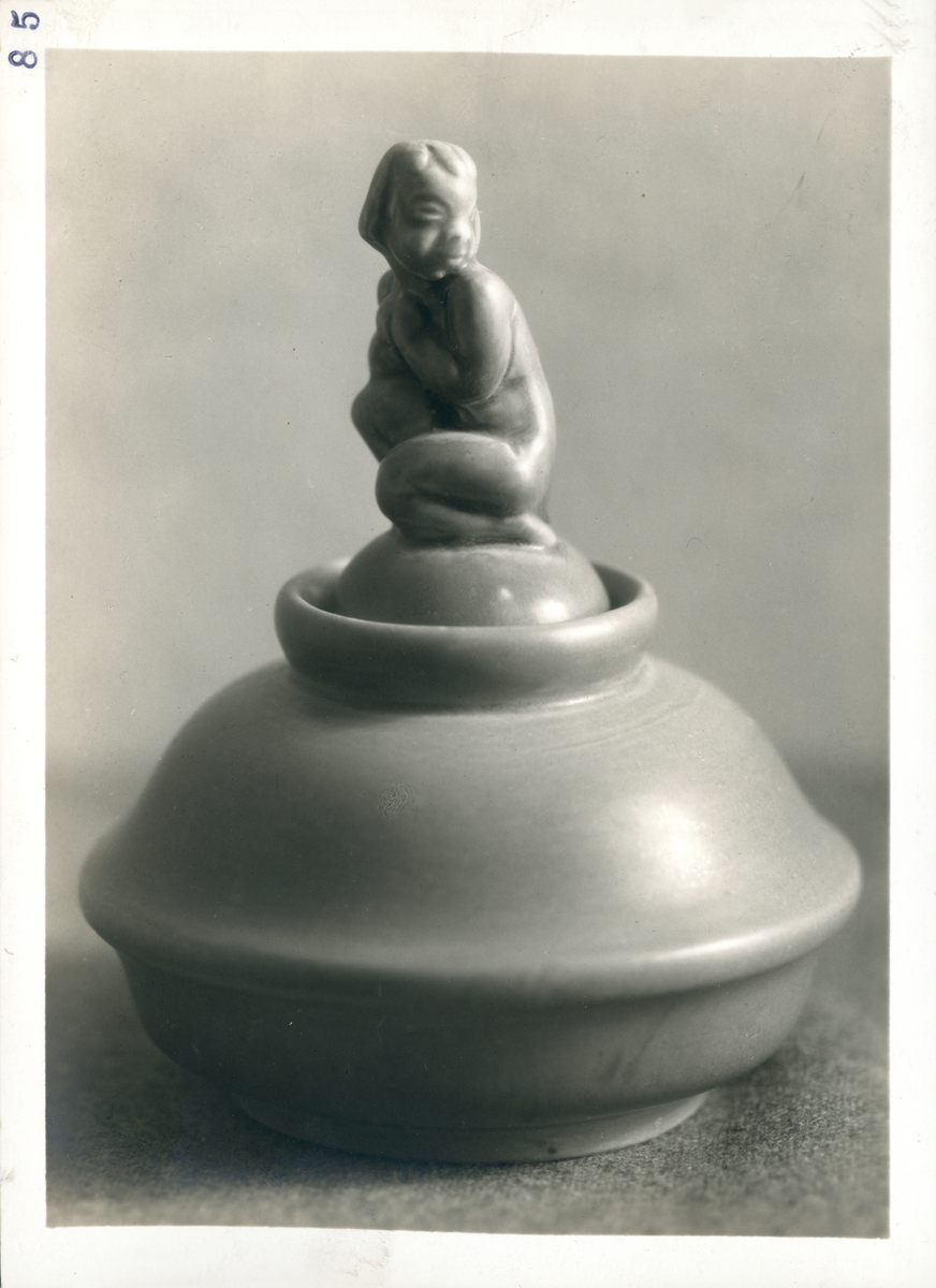 Bläckhorn från Bo Fajans, formgivare Maggie Wibom tidigt 1900-tal. Konstglasyr.