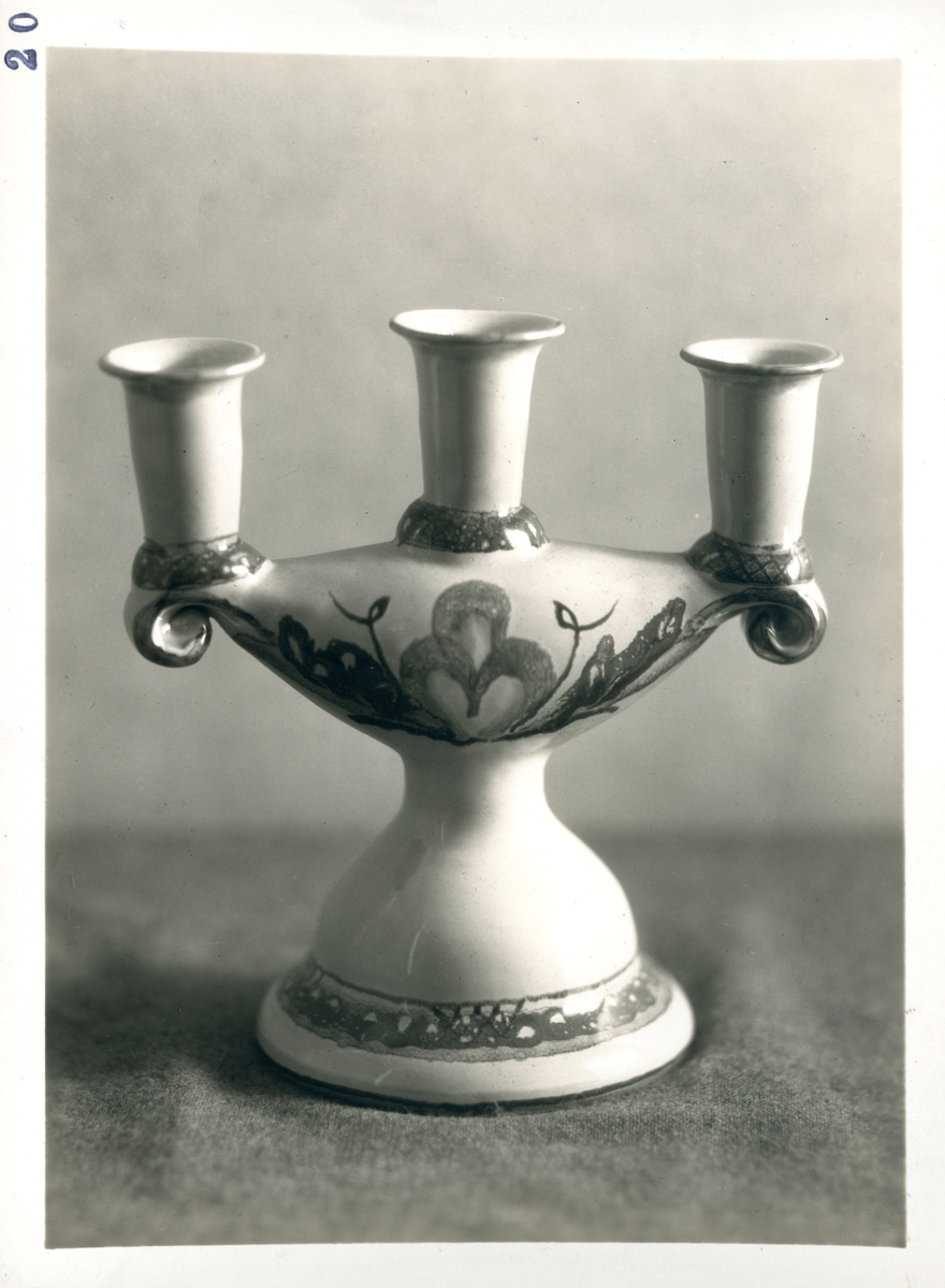 Liten trearmad ljusstake från Bo Fajans, tidigt 1900-tal.