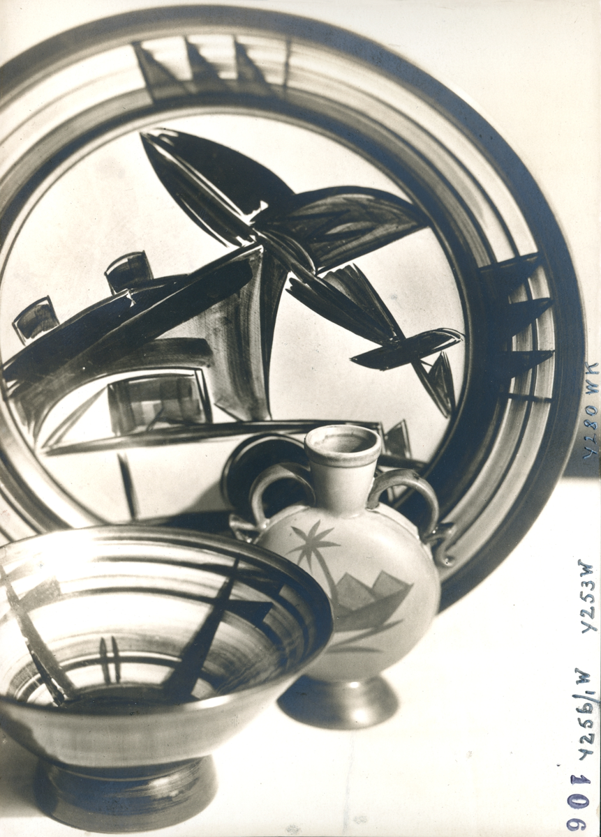 Fat, krus och skål från Bo Fajans, formgivare Maggie Wibom, tidigt 1900-tal.