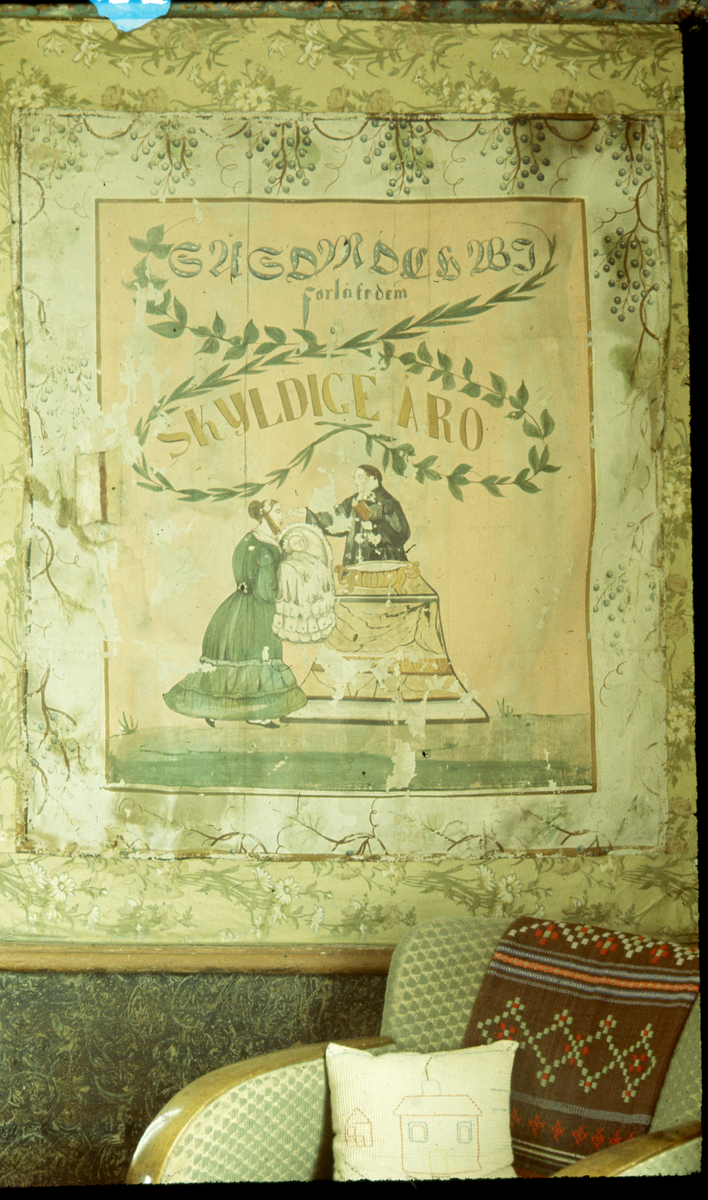 Väggmålning text delvis: "förlåte dem" "Skyldige äro".