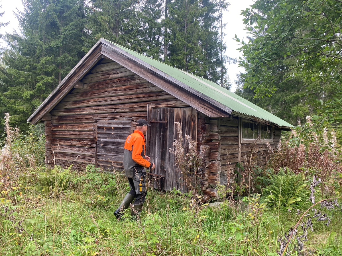 Timrad stallbyggnad i skogen vid Wittersjö såg.