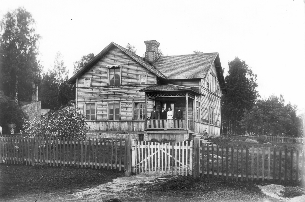 Fyra personer samlade på förstukvisten till okänd gård.
