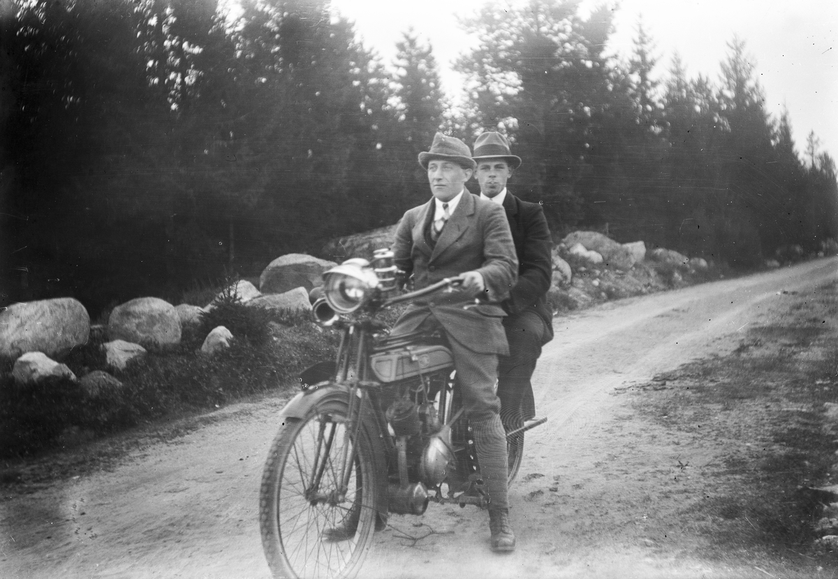 Emil Blomberg kör och bakom sitter Pils Arvid Olsson.