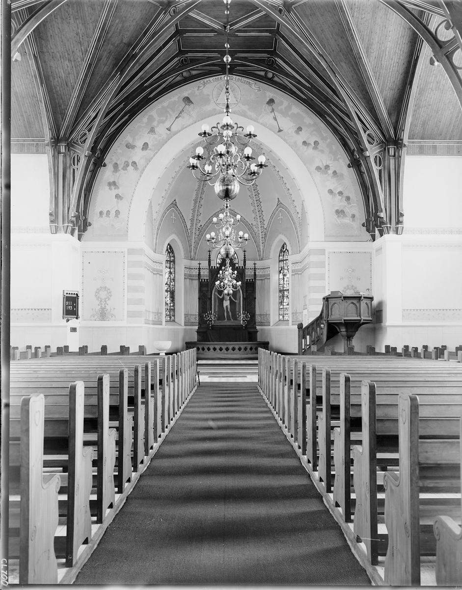 Kyrkan byggdes 1906 och brann sedan 1921.