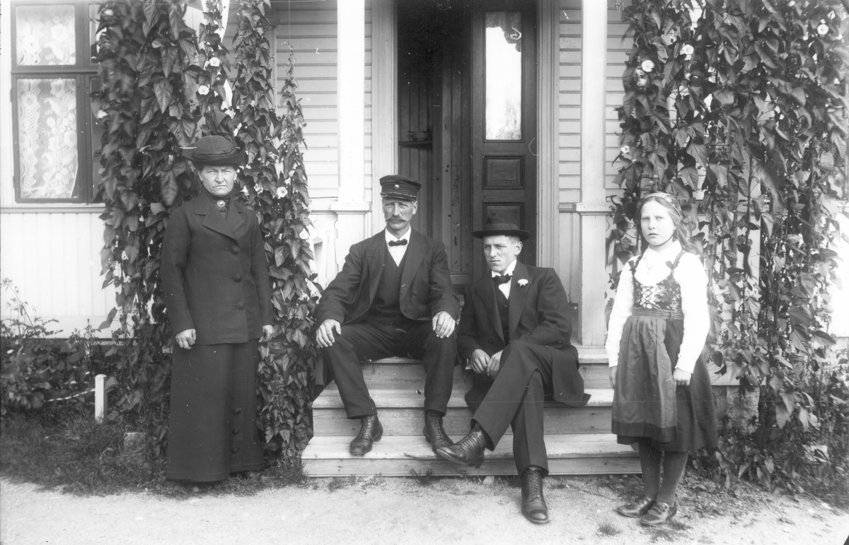 Samlade framför förstukvisten, personerna okända. Foto 6-19 sept 1915.