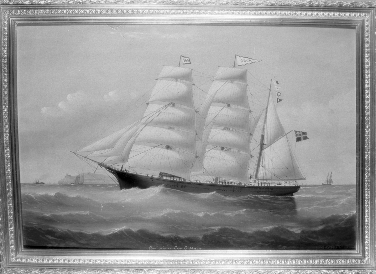 Barkskepp "Oden". Oljemålning. Fartygsutställningen i Gävle år 1933. Ägare Gefle Kulturh. museum.