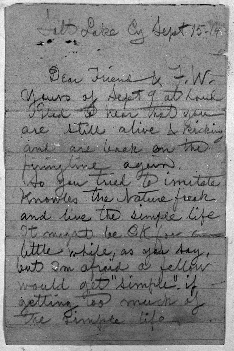 Reprofoton av brev som Joe Hill (Joel Hägglund) skrivit, 30 september 1915.