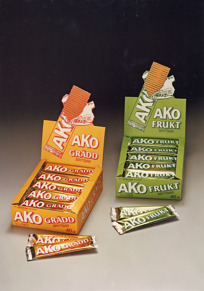 Godiskförpackningar, AKO gräddkola och AKO fruktkola.