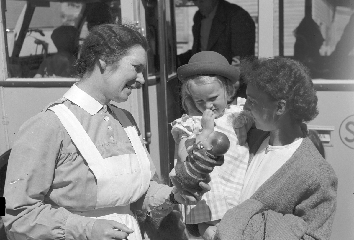 På väg till Frälsningsarmens barnkoloni i Rörberg. Taget den 10 maj 1950 i Stenebergsparken