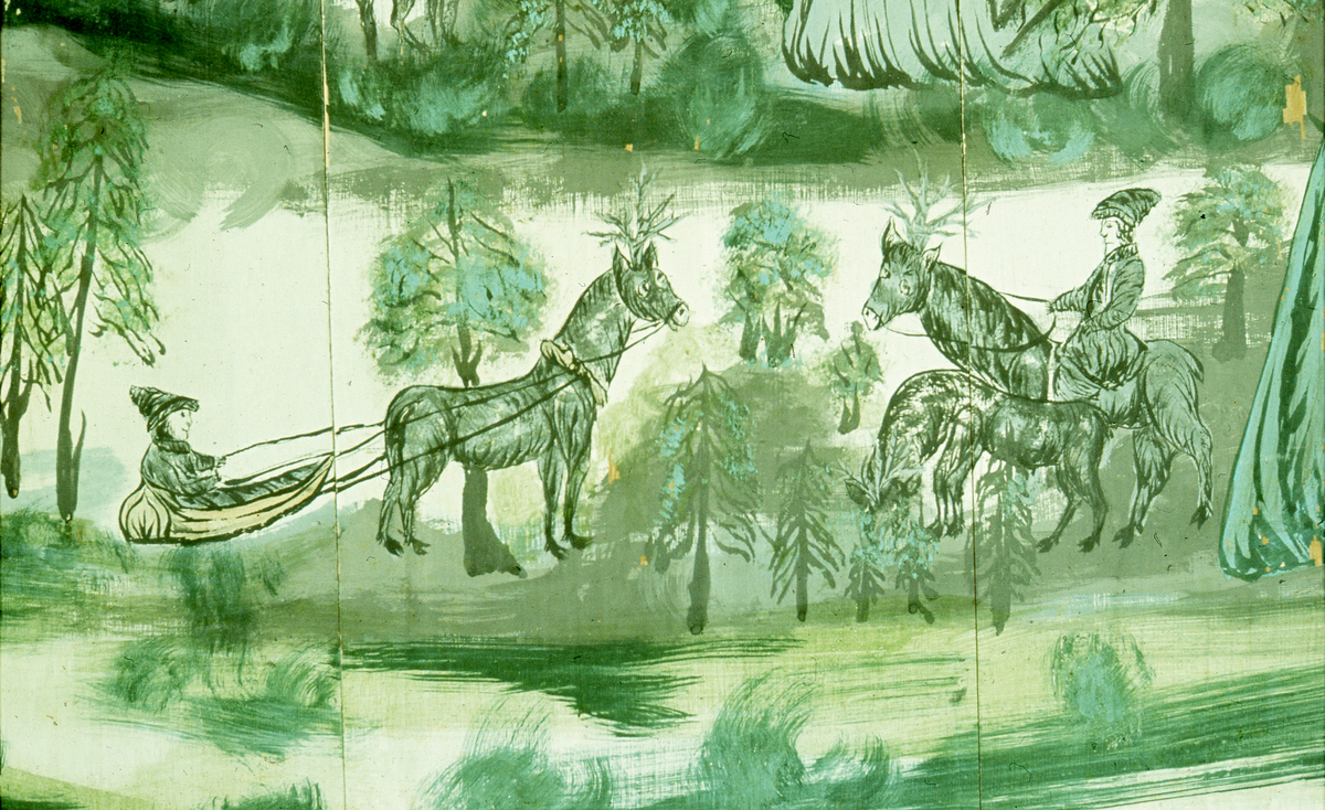 Detaljbild av väggmålning "Lapmarkken" (Lappmarken).