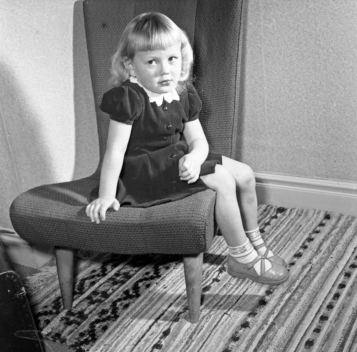 Familjen Arne Hedén, flicka på pall i hemmet.