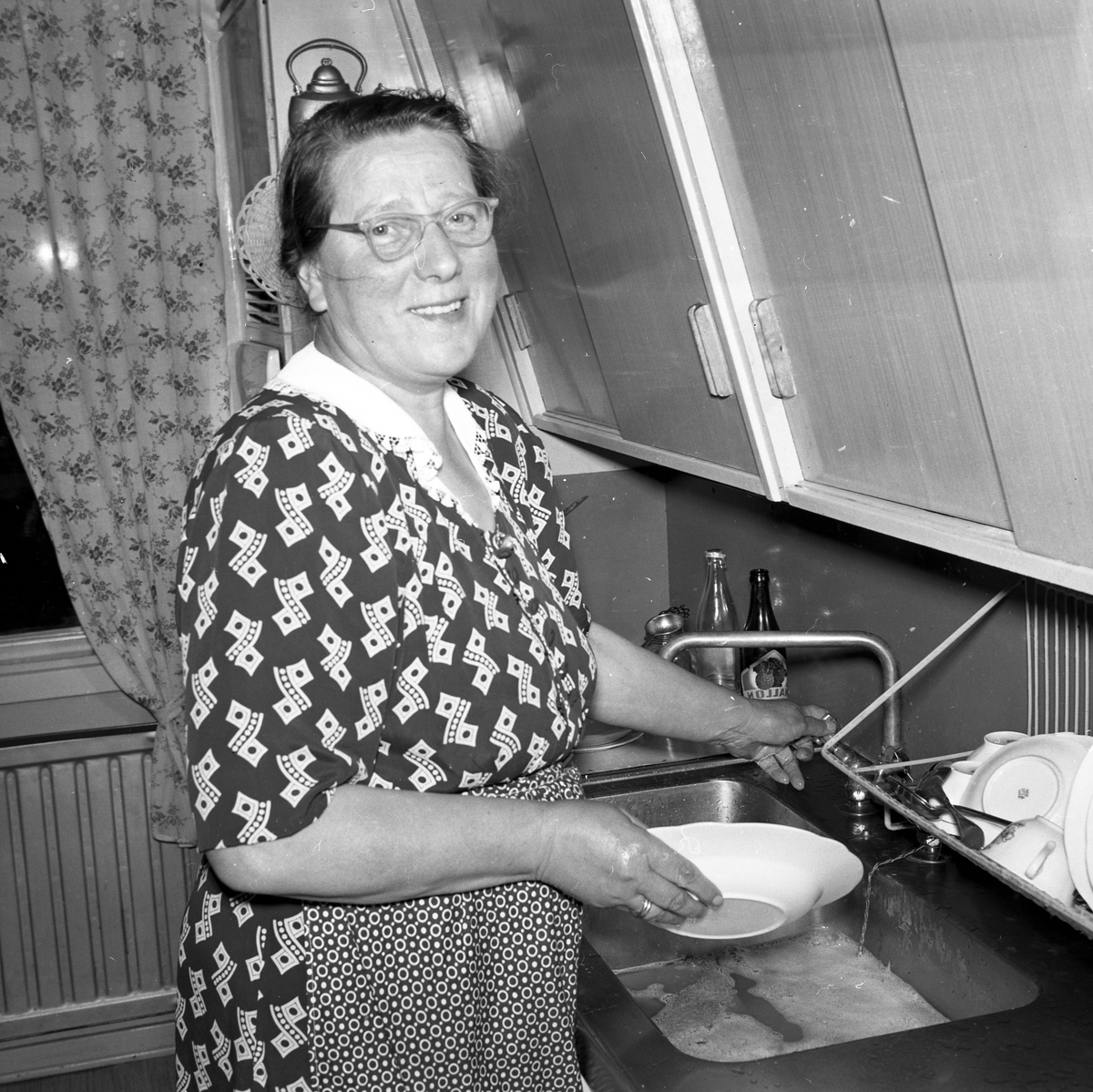 Kvinna diskar i köket.