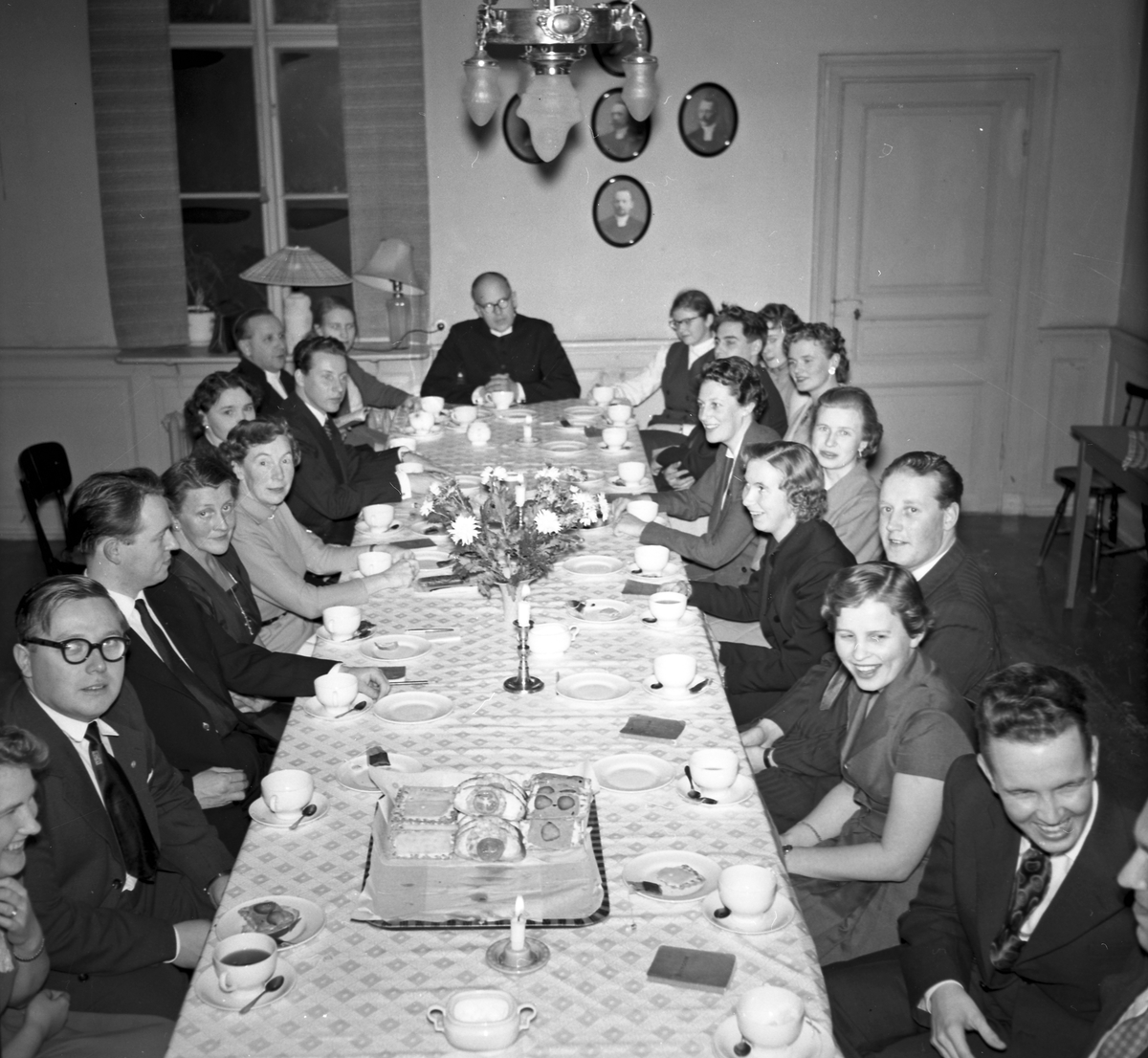 Församlingsmedlemmar till bords i Södra Församlingshuset