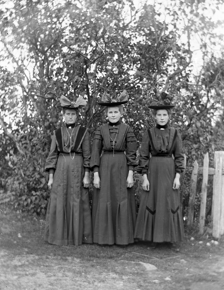 Tre kvinnor i trädgården