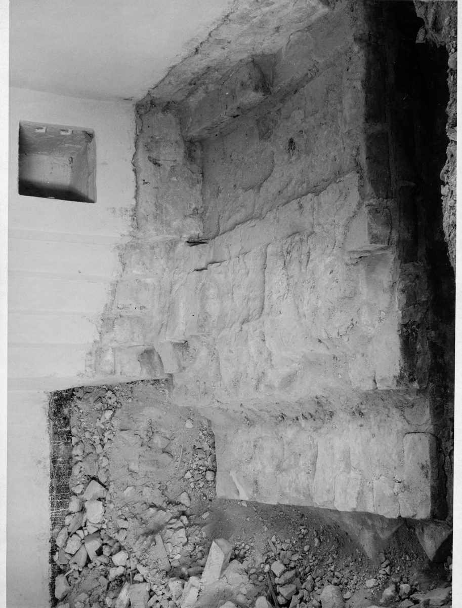Från grävningsundersökningen 1955 i långhusets östligaste del. Norra sidoaltaret.