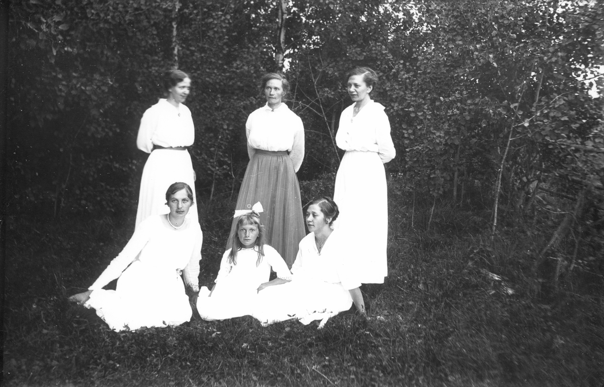 Alla systrarna Swanström. Sittande från vänster: Astrid, Margit och Gunborg. Stående från vänster: Elisabet, Elsa och Frida.