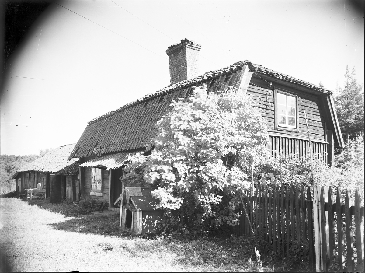 Framför gården står en hundkoja och vid uthuset finns slipstenen.